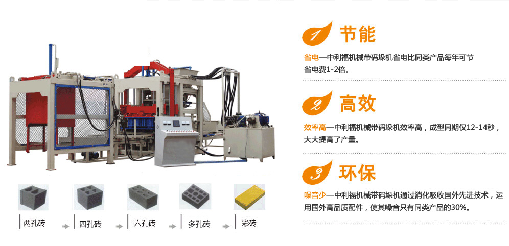 技術決定品質—中利福機械有限公司經多年研發(fā),國內首創(chuàng)多功能中型系列磚機,一機多用,既可生產不同規(guī)格型號的墻體磚,也可生產不同規(guī)格的路面磚,空心磚、護坡磚、灰沙磚、耐火磚等。